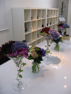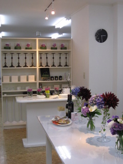 まずはアトリエのオープン写真です。このときはパープル系のお花で飾ってみました。