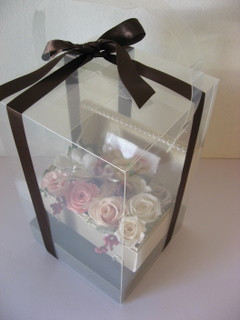 来月は母の日のプリザーブドギフトです。ケースにいれてプレゼントするととても豪華で