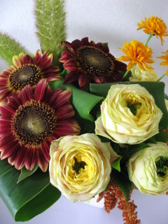 なかなか今の時期にない花材もあり、近いイメージのお花を探してつくりました。