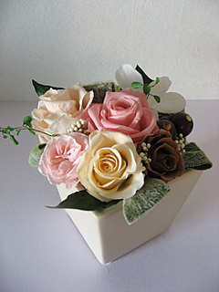 より生花に近い感じをご希望でプリザーブドフラワーとなりました。