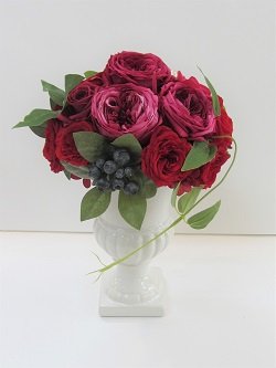ワイン系のプリザーブドフラワーのアレンジです。